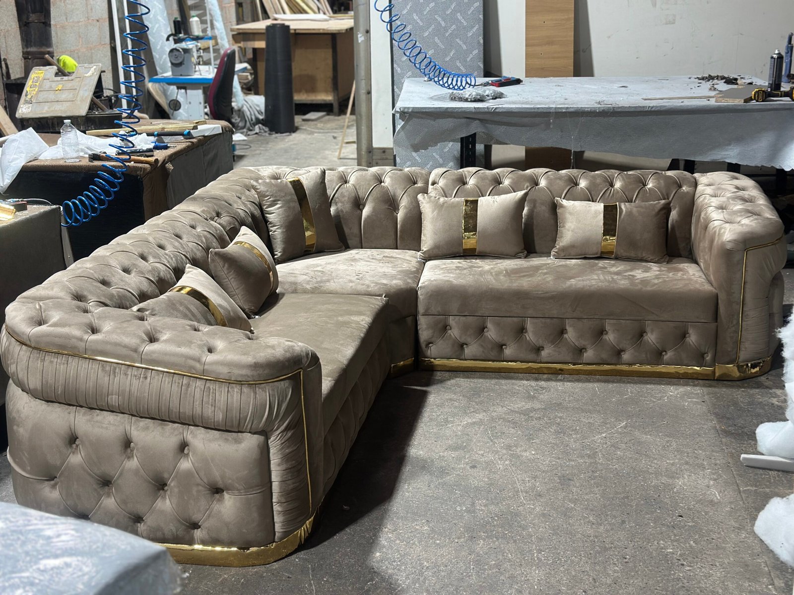 ⸻ ✨ Chesterfield Corner Sofa – Plush Velvet (White) ✨ Add a touch of elegance and luxury to your living room with this stunning Chesterfield Corner Sofa. Upholstered in premium plush velvet, this sofa offers both exceptional comfort and a rich, stylish look. ✔ Soft White Plush Velvet – Smooth, elegant and luxurious finish ✔ Classic Chesterfield Design – Deep button tufting and rolled arms for a timeless royal look ✔ Comes in 3 Easy-to-Join Parts – Simple to move, deliver, and assemble at home ✔ Standard Size: 240cm × 240cm – Perfect fit for most living room layouts ✔ Comfortable Back & Seat Cushions – Designed for everyday support and relaxation ✔ Strong & Durable Frame – Built to last with long-term stability